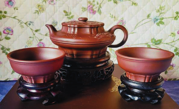 宋代詩(shī)人梅堯臣有詩(shī)云:“小石冷泉留早味,紫泥新品泛春華?!贝藟卣怯盟暮8G多年收藏的紫砂老泥為原料。值得一提的是,紫泥富含礦物質(zhì)和獨(dú)特的透氣性,讓茶水更加清醇可口。甲辰文龍壺還配了兩只龍杯,上寬下斂,簡(jiǎn)約靈動(dòng),圈足也以筋紋裝飾,使“寸柄之壺”與“盈握之杯”和諧完美而珠聯(lián)璧合。(王琪森)