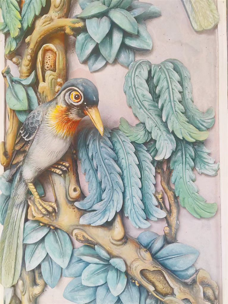 在海南的灰塑作品中,留白的運用同樣有“以無勝有”的視覺效果?!盎宜茏髌飞饰宀拾邤?,一眼看過去容易產(chǎn)生錯亂的感覺,這時候留白就顯得很重要。”寰海閣酒店負責人符燕舞說,灰塑作品有明顯的寫實風格,所呈現(xiàn)的物象紛繁多彩。如果要將灰塑作為一種藝術(shù)品保留下來,用留白的手法為作品增添美感十分必要。