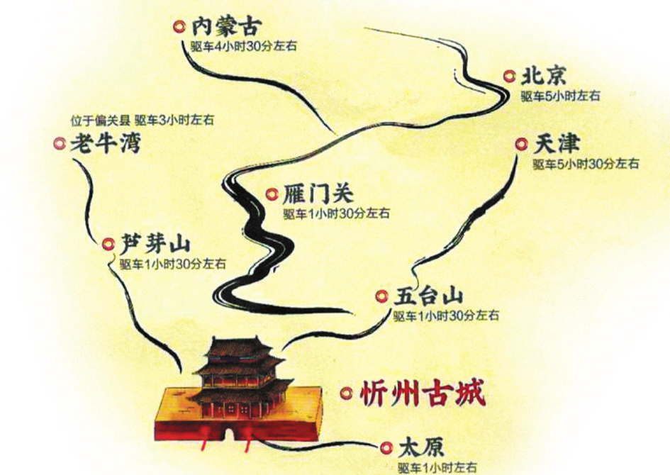 來到這里,你可以站在溝壑縱橫、梁峁起伏的黃土高原,欣賞懸崖峭立、水石相激的晉陜峽谷,也可以在古木參天、濃蔭蔽日的森林公園里散步,在百草茂盛、一望無垠的高山草甸上仰望星空。你可以游覽世界文化景觀遺產(chǎn)、佛教名山五臺山,也可以領(lǐng)略秀容、岢嵐、寧化、代州4座悠遠(yuǎn)古城的各有千秋,登攀三關(guān)營堡、歷朝歷代的邊塞長城。你可以在偏關(guān)老牛灣古渡、河曲西口古渡搖櫓渡河,回想晉商的輝煌,也可以身臨夜襲陽明堡飛機(jī)場遺址,重溫榮耀,感受歷史的震撼……