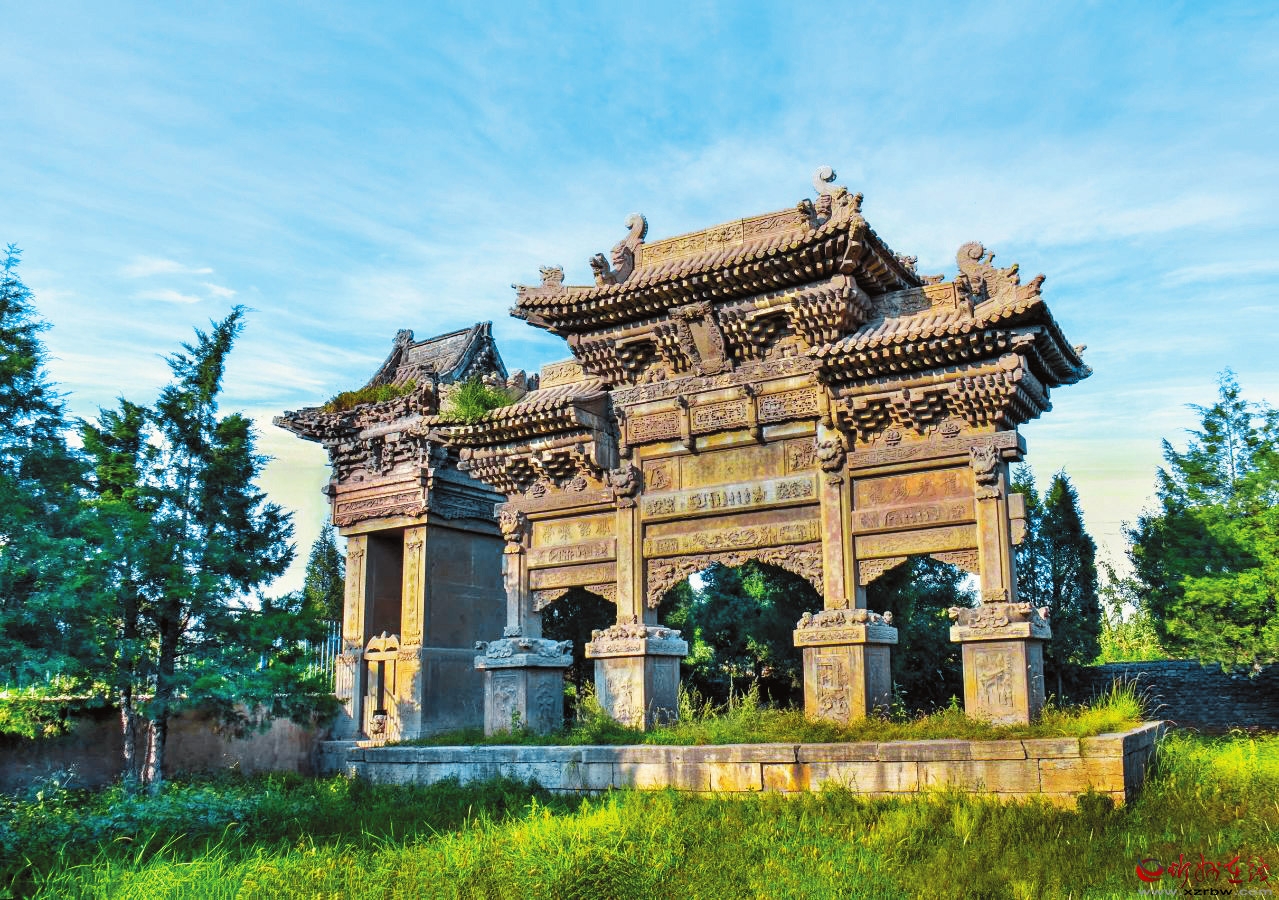 坐落于村中的朱氏牌樓是晚清中儀大夫、陜西延榆綏兵道加鹽運(yùn)使武訪疇為其母所修的節(jié)孝牌坊。它不僅見證了朱氏家族的輝煌歷史,也反映了當(dāng)時社會的文化風(fēng)貌,承載著豐富的歷史文化內(nèi)涵,為第八批全國重點(diǎn)文物保護(hù)單位。牌樓有主坊和配坊兩座,主坊矗立在村內(nèi)南街,面寬三間,四柱三樓,重檐歇山頂,高近11米、寬15米。欄板內(nèi)剔底雕刻成一幅幅人物故事圖案,霸王柱間鏤雕丹鳳朝陽。匾形走馬板上書“柏舟矢志”“竹柏流芳”各四字。牌坊下檐明間置匾一塊,書“圣旨”二字,兩次間匾書分別為“懿范”“徽音”。配坊在村南,高8米有余,四柱三門,單檐歇山頂,規(guī)模略小,造型風(fēng)格與主坊一樣,皆為石雕藝術(shù)精品。
