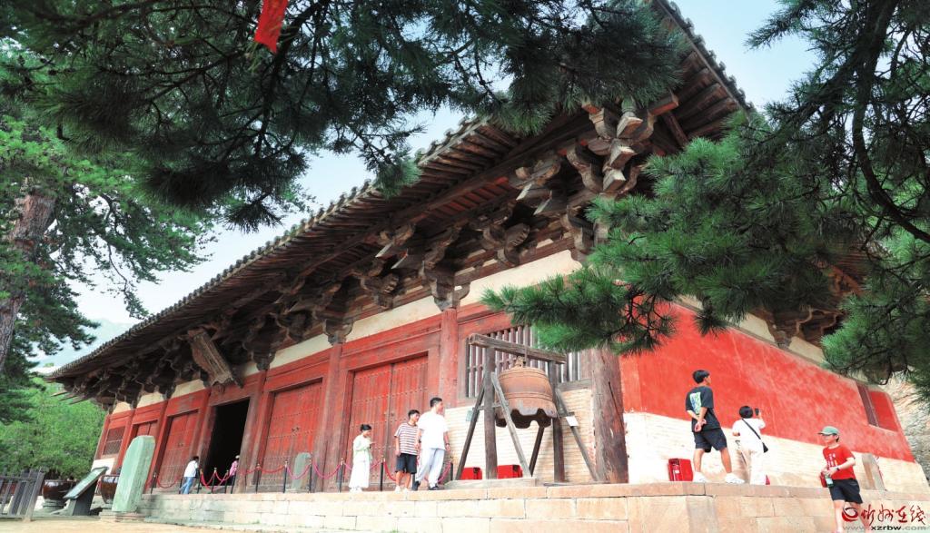 近看綠意夾道,遠(yuǎn)眺重巒疊嶂。踏著印跡斑駁的石階向上,當(dāng)佛光寺東大殿映入眼簾時,即便是常年與“國寶”作伴的專家學(xué)者,也為這古老而精湛的技藝所感嘆。