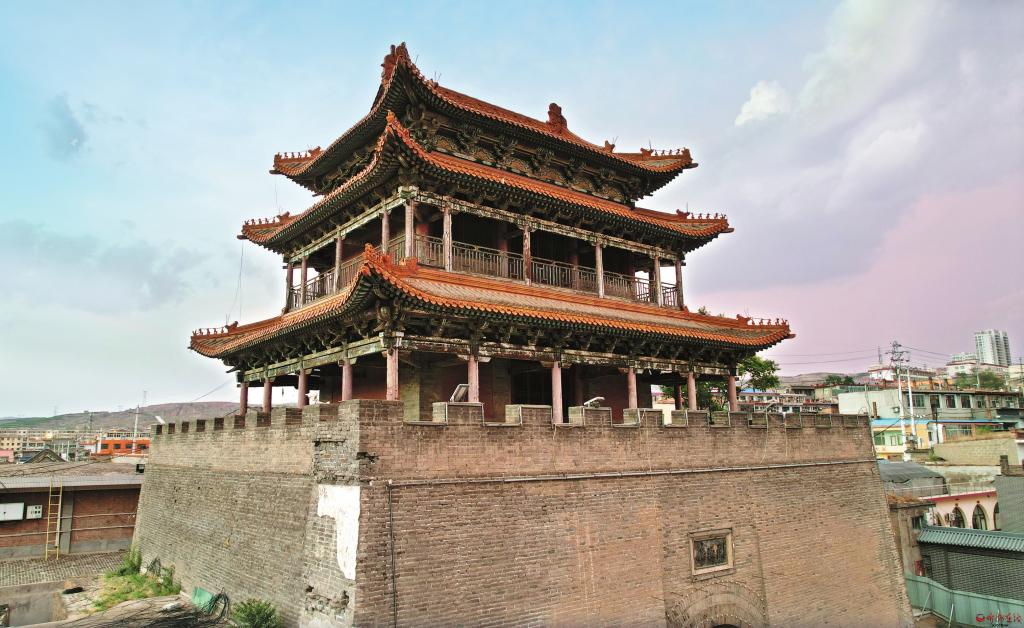 河曲縣城,北漢劉崇置雄勇鎮(zhèn)。宋太平興國七年(982年),改置火山軍,移治于鎮(zhèn)西30里。治平四年(1067年),又置火山縣,縣不久廢。金大定二十二年(1182年),升為火山州,又改隩州。金貞元年,置河曲縣。元憲宗七年州縣俱省入保德州。元至正二十八年(1368年),尚鎮(zhèn)撫截南面,另筑小城,形如葫蘆,三面皆臨深溝。明初洪武二年(1369年),仍置河曲縣。洪武六年復(fù)廢,十四年又置。明景泰元年(1450年),擴(kuò)展增修。周六里,門二,東曰朝天;西曰威遠(yuǎn)。弘治間,知縣李邦彥重修。萬歷間,邑給諫苗朝陽建議興筑,易土以磚,巡撫侯于趙同意其議,請于朝。調(diào)平潞等軍備材料以包砌。計(jì)高三丈五尺,石基七尺,并增修內(nèi)外女墻,兩門層樓,疏渠水道分三鋪,使城中積水下流,不至浸損城基。順治五年(1648年),巡撫祝世昌檄副使徐淳、知縣馬云章,捐資繕修城墻,開筑南門洞,廣五丈,高四丈有奇,內(nèi)外包城各十五丈,石基入土七尺。題曰“觀文”,上建城樓一座。題匾曰“清嘯閣”。西南增建城角樓一座,題匾曰“庾公樓”。