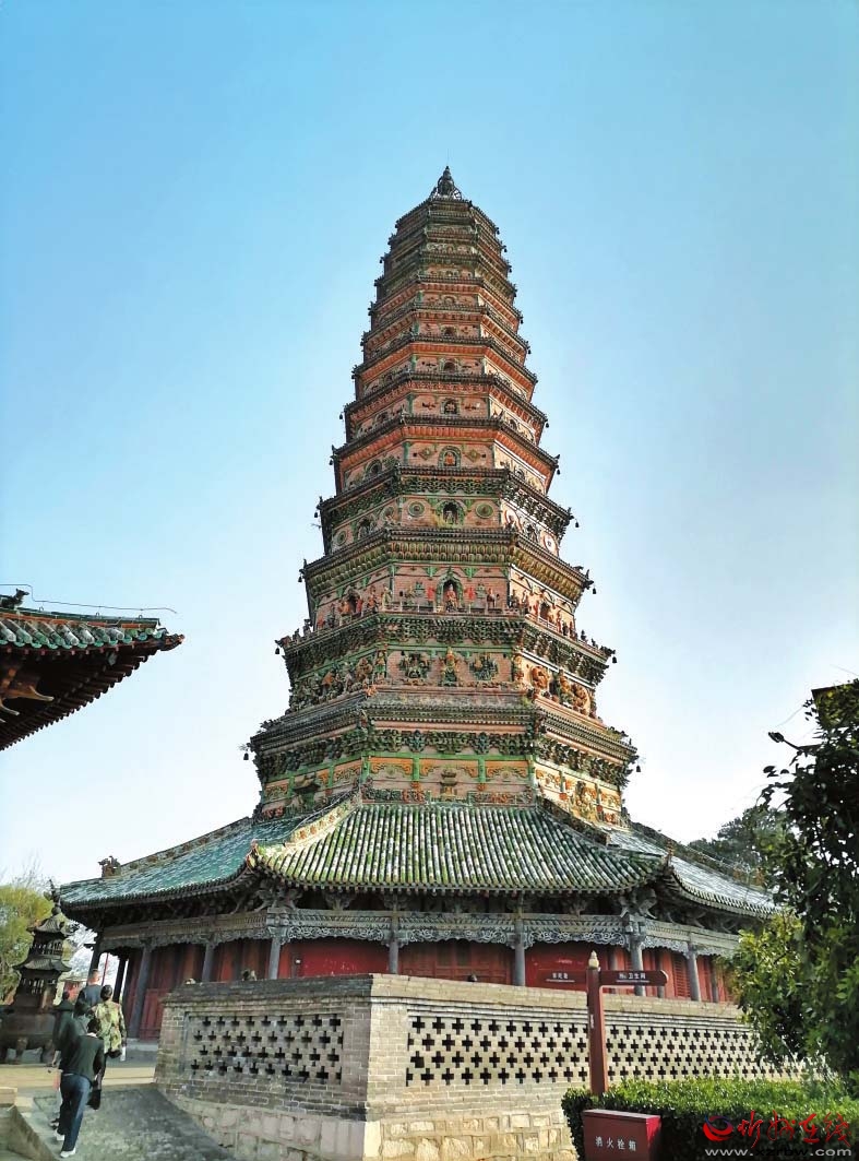 在洪洞縣,有一座舉世聞名的佛教古剎廣勝寺,“三絕一奇”令人驚嘆。一絕是飛虹琉璃塔,是廣勝寺標(biāo)志性建筑,被推為全國(guó)第一塔,塔身外部有七色琉璃構(gòu)件與裝飾圖形,每一層都有一組中心圖案,生動(dòng)逼真,色彩艷麗,被認(rèn)證為“世界最高的多彩琉璃塔”。二絕是《趙城金藏》,是玄奘從天竺取回的梵文經(jīng)卷中譯善本,世界上僅此一部,被譽(yù)為稀世珍寶。三絕是元代壁畫(huà)。內(nèi)容以祈雨、行雨、酬神等生活場(chǎng)景為主,布局嚴(yán)謹(jǐn),造型生動(dòng),堪稱我國(guó)風(fēng)俗神話題材的壁畫(huà)杰作。一奇是左右扭古柏,有1300余年歷史,一東一西,像兩位護(hù)法將軍守衛(wèi)著大殿。兩株古柏,左邊的朝左扭,右邊的向右扭,甚為奇特。