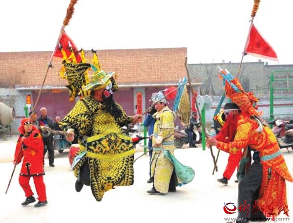 把古代戰(zhàn)爭(zhēng)場(chǎng)面演練成劇,表現(xiàn)多為騎兵對(duì)戰(zhàn),故稱(chēng)為大馬社火。今年春節(jié)期間,定襄北社西村大馬社火被錄制成視頻上傳后,成為最受歡迎的鬧紅火視頻之一,人們紛紛轉(zhuǎn)載,贊不絕口。剛剛過(guò)去的元宵節(jié),大馬社火也是定襄鬧元宵不可或缺的重頭戲,北社西村眾多村民自發(fā)組織起來(lái)耍社火,表達(dá)祈福驅(qū)邪,對(duì)風(fēng)調(diào)雨順、豐產(chǎn)增收的祈愿,形成了一道獨(dú)特的傳統(tǒng)民間文藝風(fēng)景,還吸引了山西省民間文藝家協(xié)會(huì)專(zhuān)家現(xiàn)場(chǎng)指導(dǎo),舉行了民間民俗文化調(diào)研座談會(huì)。