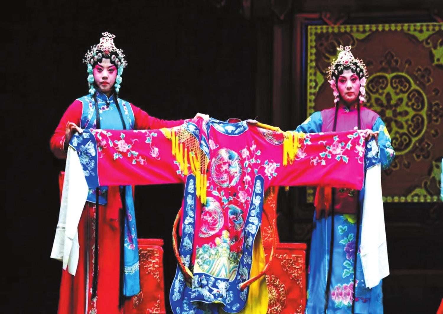 飾演王寶釧二姐王銀釧的太雨琴,13歲時就開始學(xué)習(xí)戲曲,憑借精湛的技藝,獲得了第十五屆中國少兒戲曲“小梅花金獎”。她主攻花旦兼演小生,是一位唱、念、做、打樣樣精通的青年新秀。在戲中,她把一個愛慕虛榮、極度勢利的王銀釧刻畫得惟妙惟肖,特別是依傍在丈夫魏虎身邊秀恩愛的情節(jié)更為出彩,現(xiàn)場戲迷好評不斷。