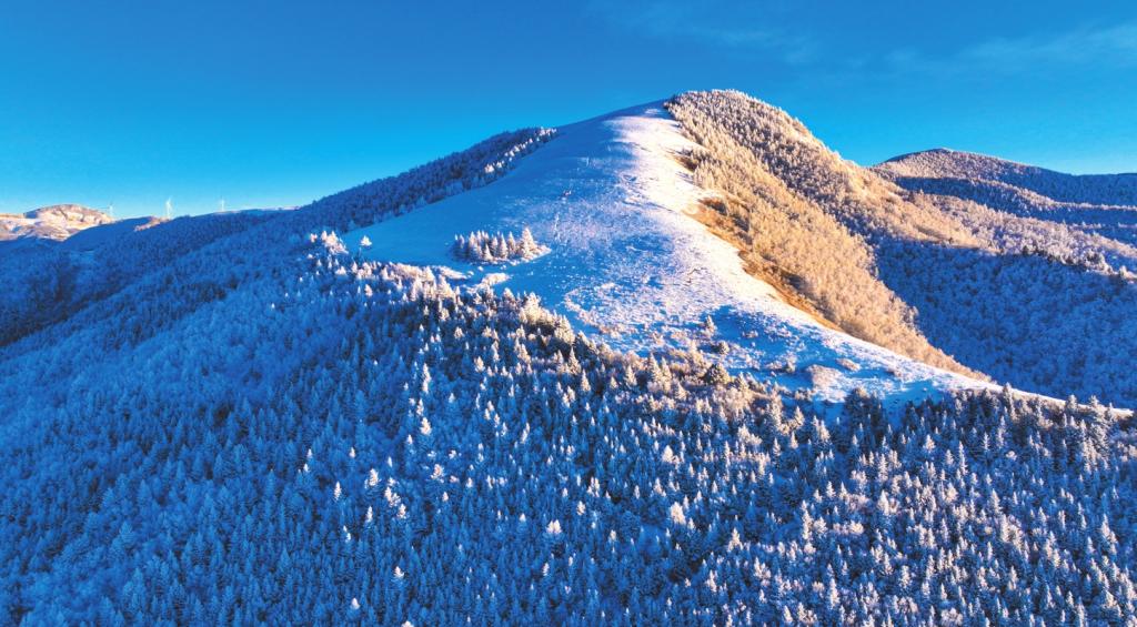 冬之凈,返璞歸真的意蘊(yùn)。當(dāng)一場(chǎng)大雪如期而至,金山梁便徹底沉靜下來,進(jìn)入一個(gè)冰雕玉砌的童話世界。梁頂之上,積雪平整如鏡,宛如瓊瑤鋪地,反射著清冷而純粹的日光。而當(dāng)陽光突破云層,照射在冰面上,則光芒閃耀,令人不敢直視。松枝上堆滿了蓬松的積雪,傲立于山崖,盡顯在嚴(yán)酷中堅(jiān)守的堅(jiān)韌品格;山間那些奇形怪狀的巖石,覆上白霜后,更是空蒙清靈,意韻悠長。生命的痕跡并未完全消失,偶有野兔為了覓食奔躍而過,在雪地上留下一串輕盈的足跡,但轉(zhuǎn)瞬便被新雪覆蓋,似乎了無痕跡;時(shí)有耐寒的鳥兒掠崖飛去,翅羽間振落的冰晶,在空中劃出一道優(yōu)美的弧線。