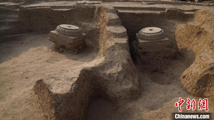 2018年11月25日,鄴南城宮城區(qū)206號(hào)大殿出土蓮花覆盆檐礎(chǔ)。(鄴城考古隊(duì)供圖)