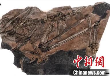圖為化石右側(cè)長(zhǎng)長(zhǎng)的印跡為下肢。 政和縣融媒體中心 供圖