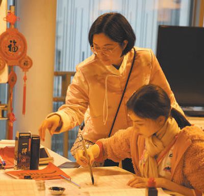 2月3日,在法國巴黎中國文化中心“走進中心過大年”活動中,學員體驗中國書法。本報記者 尚凱元攝