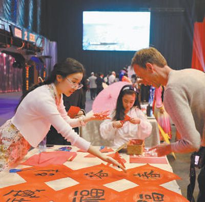 “龍”“福”“春”……在書法剪紙展臺上,一幅幅書法作品傳遞著節(jié)慶的氛圍。當?shù)鼐用窭獱柲闷鹨粡垺案!弊?,向工作人員詢問寓意。拉莫爾就職的企業(yè)與中國有頻繁的業(yè)務往來,他曾兩次到訪中國。他說:“中國文化博大精深,中國人有著強烈的文化認同感。希望多多舉辦這樣的活動,讓更多人了解中國文化?!?/p>