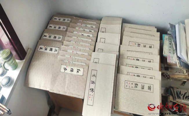 為了練字,他連手機(jī)也不買,惹得好多親朋好友找不到他。他橫下一條心,一個(gè)字可以練千遍、萬遍;一支毛筆握在手心不離不棄,天天寫,月月寫,年年寫,這一寫就寫了26年。為了寫好一個(gè)字,弄懂一個(gè)字,他不知道要練習(xí)多少遍,查多少次字典。由寫字到學(xué)文,他選擇了“四大名著”。古人筆錄者層出不群,“眼過千遍,不如手過一遍”。抄書不僅練習(xí)了書法,怡養(yǎng)性情,關(guān)鍵是補(bǔ)習(xí)了博大精深的中國文化。