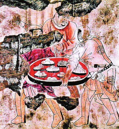 如今的主食豐富多樣,不僅包括面條、餃子、餛飩、米粉等面制品,還有以玉米、小米等雜糧為代表的粗糧制品。其實(shí),宋代已形成中國(guó)人主食的雛形,《東京夢(mèng)華錄》載:“凡餅店,有油餅店,有胡餅店。若油餅店,即賣蒸餅、糖餅、裝合、引盤之類。胡餅店即賣門油、菊花、寬焦、側(cè)厚、油碢、髓餅、新樣滿麻。每案用三五人捍劑卓花入爐。”“蒸餅”即炊餅,“裝合”即盒裝的餅,“引盤”是盛于盤中的食品,“捍劑卓花”意思是把面團(tuán)先分成大小相近的劑子,再分別搟開成餅,最后捏出花樣。
