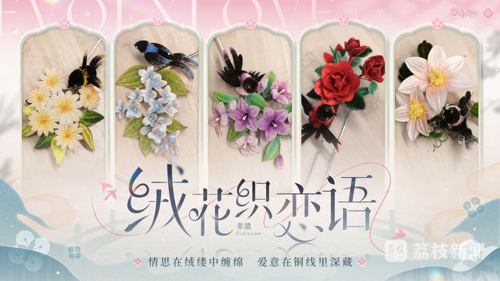 上個(gè)世紀(jì)90年代末,純手工制作的絨花漸漸被工業(yè)流水線生產(chǎn)的頭花、胸花所取代,傳統(tǒng)工藝傳承受到?jīng)_擊。2006年,在“南京最后的絨花匠人”趙樹憲的堅(jiān)持與努力下,絨花煥發(fā)新生,在熱愛傳統(tǒng)文化的年輕人當(dāng)中人氣逐漸高漲。