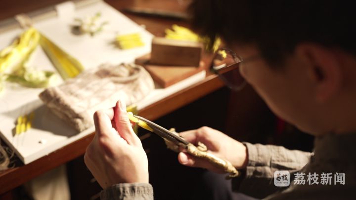 盡管對(duì)初學(xué)者來(lái)說(shuō),每一個(gè)步驟都有不同的難點(diǎn),但最讓嚴(yán)鑫記憶猶新的還是打尖留下的疼痛?!按蚣饩褪菍⒔q條修剪成需要的形狀,需要左右手的配合,右手拿剪刀,左手的食指和拇指進(jìn)行捻轉(zhuǎn)。一天的工作當(dāng)中我們基本上大部分時(shí)間都是在做這個(gè)過(guò)程。剛開始學(xué)的時(shí)候晚上睡覺都會(huì)疼醒,左手的食指都沒有辦法完全彎曲下去?!?/p>