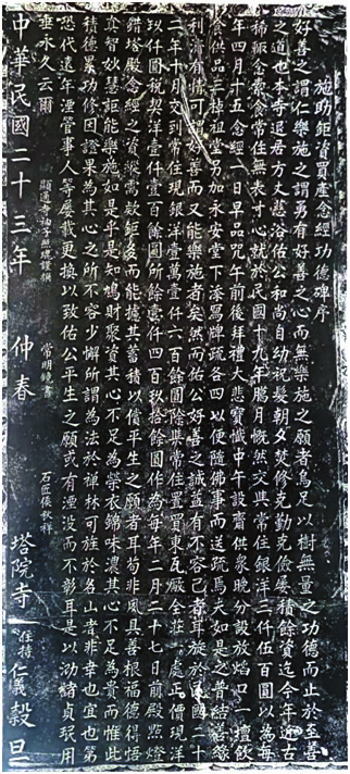 五臺山碑文書法以楷書居多,大部分傳承了唐楷工整嚴(yán)謹(jǐn)?shù)娘L(fēng)格。其中有的受歐陽詢、褚遂良瘦硬書風(fēng)影響,如明正德皇帝敕御馬監(jiān)太監(jiān)韋敏碑拓片,寫得堅(jiān)硬勁拔,用筆靈動飄逸;有的受顏真卿作品雄渾豪放之風(fēng)影響,用筆提按明顯,體態(tài)豐厚;也有的受柳公權(quán)險(xiǎn)勁瘦硬書風(fēng)熏陶,如塔院寺拓片,字體瘦硬,骨力遒勁,結(jié)體嚴(yán)謹(jǐn)。這些楷書作品用筆質(zhì)樸無華,結(jié)構(gòu)布局自然,多出自民間書法愛好者之手。他們憑借毛筆、鑿刀等簡易工具,依據(jù)個(gè)人偏好進(jìn)行模仿,不刻意追求技巧精妙,而是隨心所欲地刻出形態(tài)各異的字體。