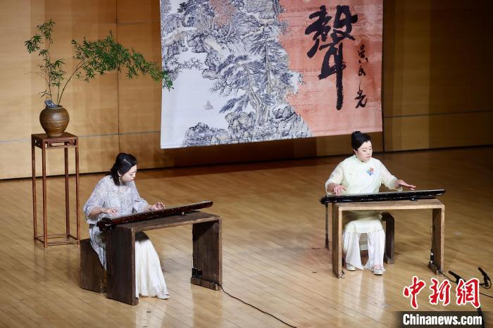 2024年12月,中國音樂學(xué)院“弦外有琴聲——古琴專場(chǎng)音樂會(huì)”,該校國樂系副教授黃梅(右)和碩士研究生李孟潔(左)演奏雙琴版《流水》。中新社記者 易海菲 攝