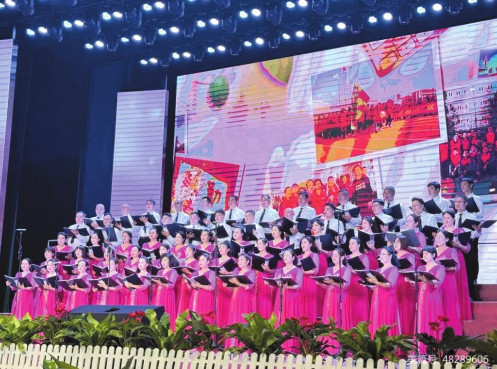 從精心挑選作品選題、強(qiáng)化各個(gè)聲部,到細(xì)致處理和聲、豐富音色層次,再到落實(shí)演員人選、打磨舞臺(tái)表現(xiàn),每一個(gè)環(huán)節(jié)都經(jīng)過了精雕細(xì)琢。經(jīng)過兩個(gè)月的刻苦排練,9月13日下午3時(shí)許,心河成人合唱團(tuán)作為本次大賽第四場(chǎng)第六支登臺(tái)表演的隊(duì)伍,以飽滿昂揚(yáng)的狀態(tài)精彩亮相。