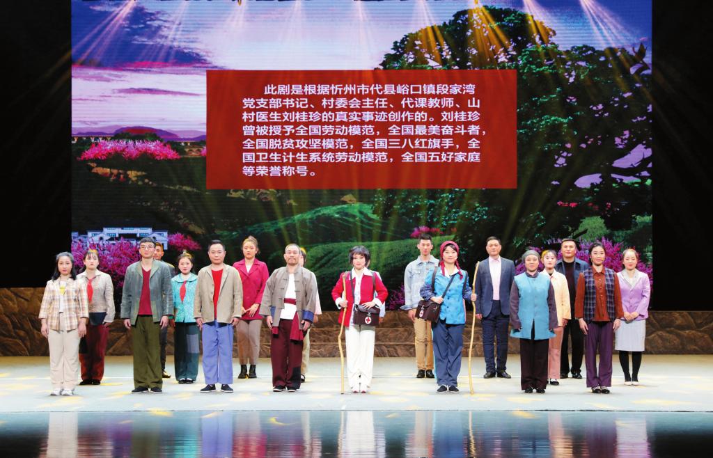 得知自己飾演女主角柳玉珍,演員蘇瑞芳背后做了很多功課,親自到段家灣與原型劉桂珍“零距離”接觸。聽完桂珍大姐的故事,蘇瑞芳內(nèi)心無比震撼,為了更好地塑造角色,一有空閑就拉著搭檔“開小灶”,反復打磨動作?!拔枧_上的每個人物都有生活原型,每段劇情都是根據(jù)真實事件改編而來。”蘇瑞芳動容地說,“現(xiàn)實中桂珍大姐遇到的情況可能比舞臺上表現(xiàn)得更困難,但她卻始終不忘初心,扎根農(nóng)村,身兼‘四職’,承擔起脫貧攻堅領頭雁、治病救人好醫(yī)生、教書育人好老師、扎根基層好黨員等多重角色,以引領村民脫貧致富為己任,忠實踐行一名共產(chǎn)黨員的神圣使命。她身上的優(yōu)秀品質(zhì)值得我們每一個人學習,我為自己能夠有機會飾演她感到驕傲自豪!”