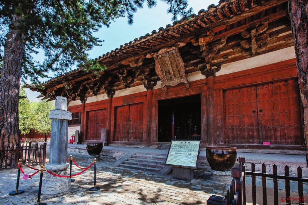 東大殿是寺院的主殿,大殿構(gòu)架由屋深柱網(wǎng)、鋪?zhàn)鲗雍臀蓓斄杭苋糠织B加而成,七鋪?zhàn)鞫饭翱v橫恣肆,威壓四方,是現(xiàn)存中國(guó)古建筑中斗拱挑出層數(shù)最多、距離最遠(yuǎn)的一個(gè)實(shí)例,也是我國(guó)集唐代建筑、彩塑、壁畫、題記、經(jīng)幢于一殿的孤例。