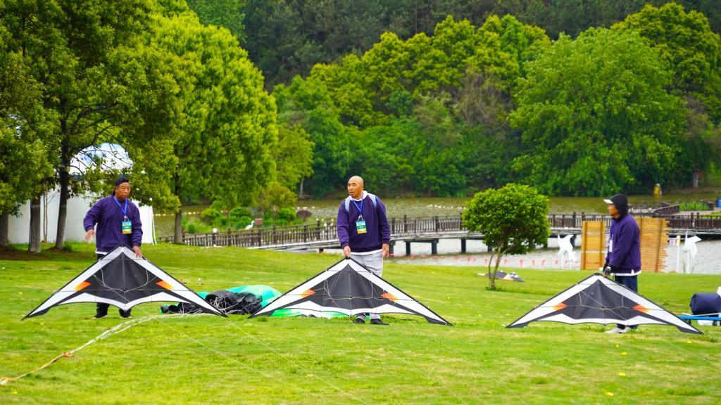 4月24日,運動風(fēng)箏參賽選手正在做賽前準(zhǔn)備。新華社記者龔聯(lián)康攝