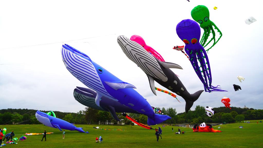 本次風(fēng)箏節(jié)上,大蜈蚣、大章魚等各式各樣造型的軟體風(fēng)箏在木蘭草原天空中隨風(fēng)游動,上演“天空動物園”,場面蔚為壯觀。其中,長度超過40米的巨型鯨魚風(fēng)箏受到了眾多游客的熱捧。