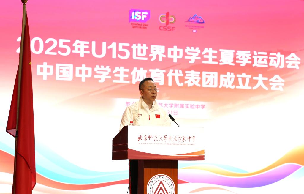 新華社北京3月31日電(記者韋驊)2025年U15世界中學(xué)生夏季運(yùn)動(dòng)會(huì)中國(guó)中學(xué)生體育代表團(tuán)成立大會(huì)31日在北京師范大學(xué)附屬實(shí)驗(yàn)中學(xué)召開,中國(guó)代表團(tuán)將派出100名運(yùn)動(dòng)員赴塞爾維亞茲拉蒂博爾參賽。