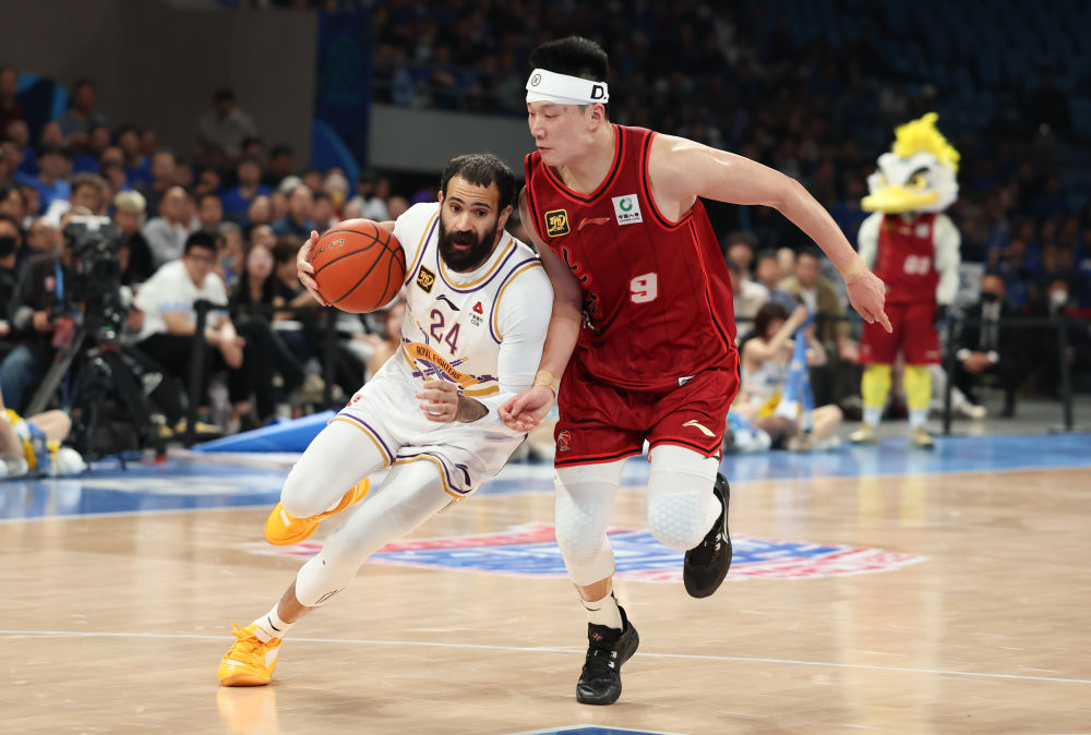 4月14日,北控隊(duì)球員里勒(左)在比賽中突破。新華社記者 王楷焱 攝