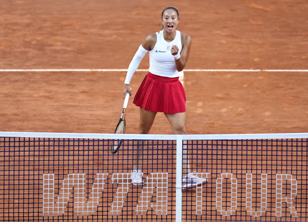 此前雙方兩次交手,各取一勝,此役是兩人首次在紅土場(chǎng)地交鋒。首盤(pán)比賽鄭欽文狀態(tài)火熱,以5:0遙遙領(lǐng)先。此后弗萊徹連保帶破,將比分追至3:5。第九局,鄭欽文拿下發(fā)球勝盤(pán)局,以6:3先下一城。