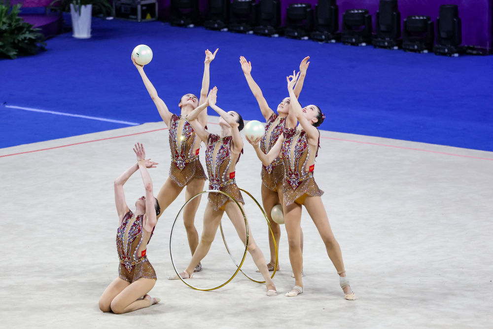 成年集體3球2圈資格賽中,巴黎奧運會冠軍丁欣怡、王瀾靜領銜的北京體育大學隊獲得全場最高的28.40分。四川、上海、江蘇等隊獲得3球2圈單項決賽資格;加上2日的5帶資格賽成績,四川、陜西電子、遼寧金滿星等隊鎖定全能決賽資格。
