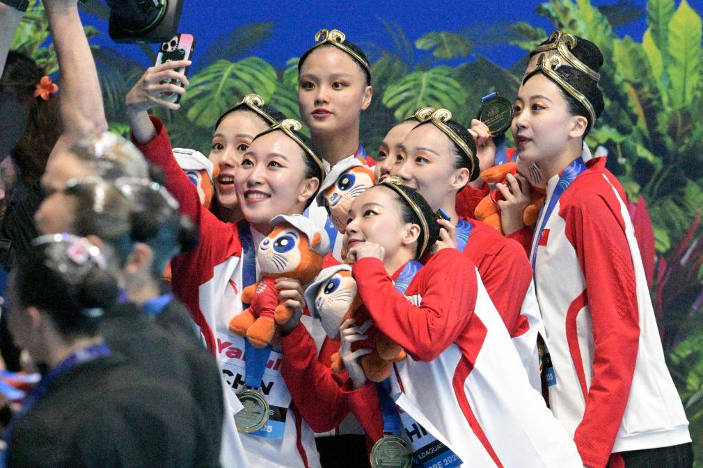 22日晚,2025年游泳世錦賽花游集體技術自選決賽,預賽排名第一的中國隊最后登場。中國隊沿用了世界杯總決賽時的“悟空”主題,比賽中姑娘們頭戴金箍,化身“天命人”,伴隨著《黑神話·悟空》的配樂,在水中翩翩起舞。