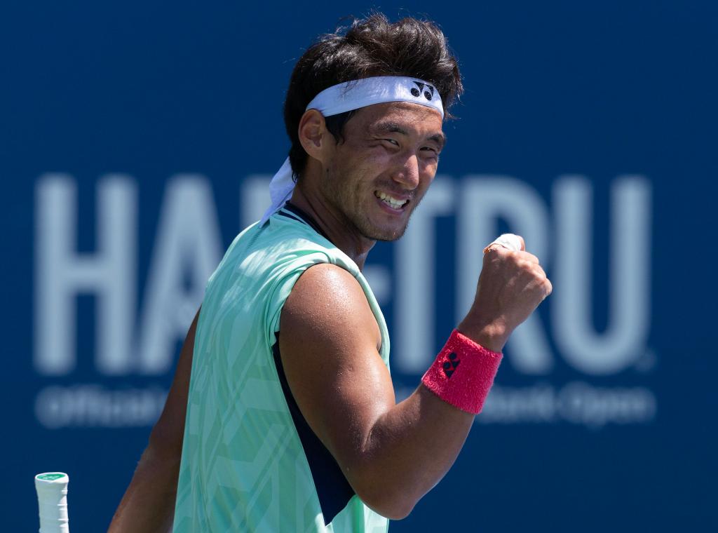 7月28日,中國(guó)選手布云朝克特在比賽后慶祝勝利。當(dāng)日,在多倫多舉行的2025年加拿大國(guó)家銀行網(wǎng)球公開(kāi)賽男單首輪比賽中,中國(guó)選手布云朝克特2比0戰(zhàn)勝捷克選手科普里瓦,晉級(jí)第二輪。新華社發(fā)(鄒崢攝)