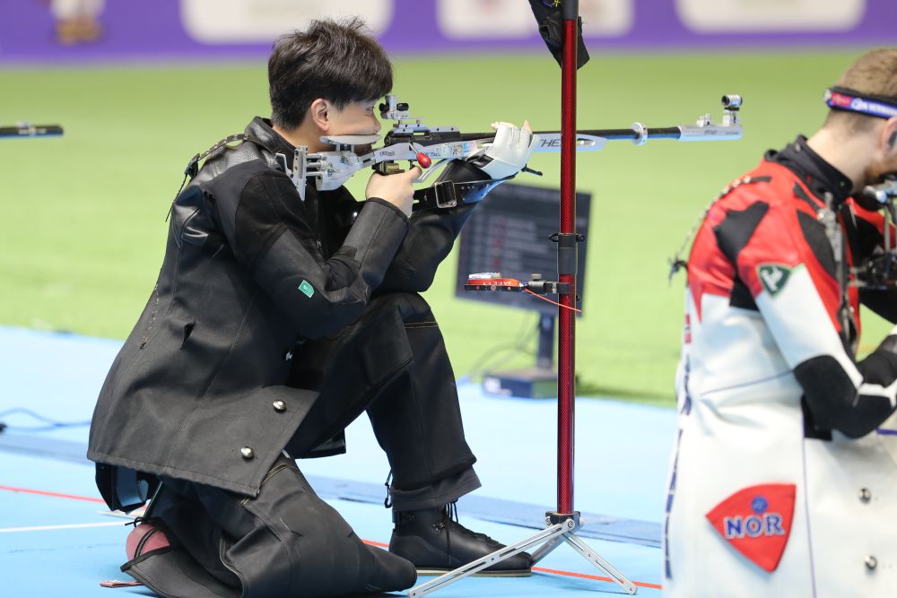 男子50米步槍三姿決賽的懸念持續(xù)到最后一槍。跪射和臥射結束后,奧運冠軍劉宇坤比排名第二的印度新秀托馬爾高出0.2環(huán)。此后,這位28歲的世界紀錄保持者始終保持著微弱領先。倒數(shù)第二槍,劉宇坤打出9.7環(huán),被托馬爾反超0.1環(huán)。最后一槍,劉宇坤10.1環(huán),而對手經(jīng)過長時間猶豫打出9.8環(huán),葬送良機。劉宇坤以0.2環(huán)的優(yōu)勢驚險奪冠,成績?yōu)?67.1環(huán)。這也是劉宇坤的第一個世錦賽冠軍,他曾在2017年世錦賽中獲得該項目青年組冠軍。