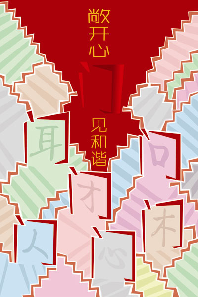 黑龍江省“雪花杯”優(yōu)秀公益廣告平面類銀獎——《敞開心門見和諧》