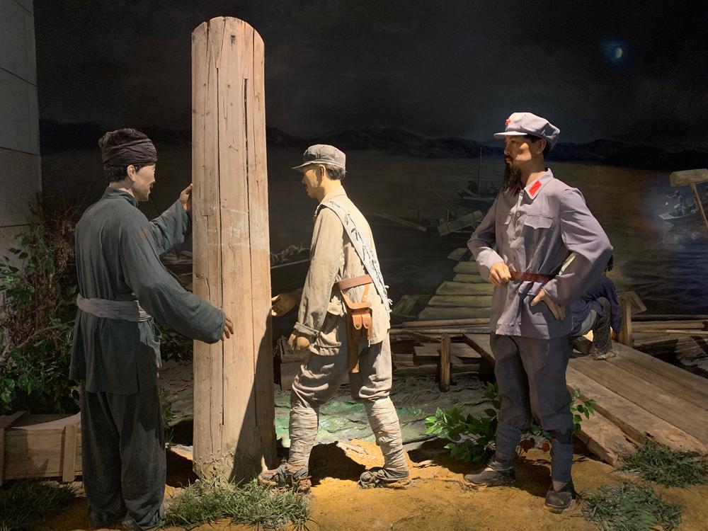 △中央紅軍出發(fā)紀(jì)念館再現(xiàn)于都老人將自己的棺木捐給紅軍搭浮橋的場(chǎng)景。(總臺(tái)央視記者郭晗光拍攝) 2019年5月,習(xí)近平在參觀中央紅軍長(zhǎng)征出發(fā)紀(jì)念館時(shí)動(dòng)情地說(shuō),現(xiàn)在國(guó)家發(fā)展了,人民生活改善了,我們要飲水思源,不能忘記革命先輩、革命先烈,不能忘記革命老區(qū)的父老鄉(xiāng)親?!耙园傩招臑樾模c人民同呼吸、共命運(yùn)、心連心,是黨的初心,也是黨的恒心。” 71年前,解放戰(zhàn)爭(zhēng)最后一場(chǎng)大戰(zhàn)役即將在長(zhǎng)江邊展開。在人民群眾支持下,僅半個(gè)月時(shí)間,人民解放軍就征集到1萬(wàn)余只船,一舉突破長(zhǎng)江防線。如今,渡江戰(zhàn)役紀(jì)念館里,還保留著當(dāng)年的渡船。 今年8月,總書記在安徽合肥參觀渡江戰(zhàn)役紀(jì)念館時(shí)說(shuō),“淮海戰(zhàn)役的勝利是靠老百姓用小車推出來(lái)的,渡江戰(zhàn)役的勝利是靠老百姓用小船劃出來(lái)的。任何時(shí)候我們都要不忘初心、牢記使命,都不能忘了人民這個(gè)根,永遠(yuǎn)做忠誠(chéng)的人民服務(wù)員?!?/span>