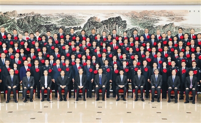 3月29日,黨和國(guó)家領(lǐng)導(dǎo)人習(xí)近平、王滬寧、趙樂際等在北京會(huì)見全國(guó)掃黑除惡專項(xiàng)斗爭(zhēng)總結(jié)表彰大會(huì)代表。新華社記者 黃敬文攝