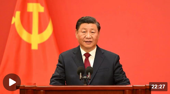 在中國共產(chǎn)黨第二十屆中央委員會第一次全體會議上當選的中共中央總書記習(xí)近平和中共中央政治局常委李強、趙樂際、王滬寧、蔡奇、丁薛祥、李希,23日中午在人民大會堂同采訪中共二十大的中外記者見面。習(xí)近平發(fā)表重要講話。