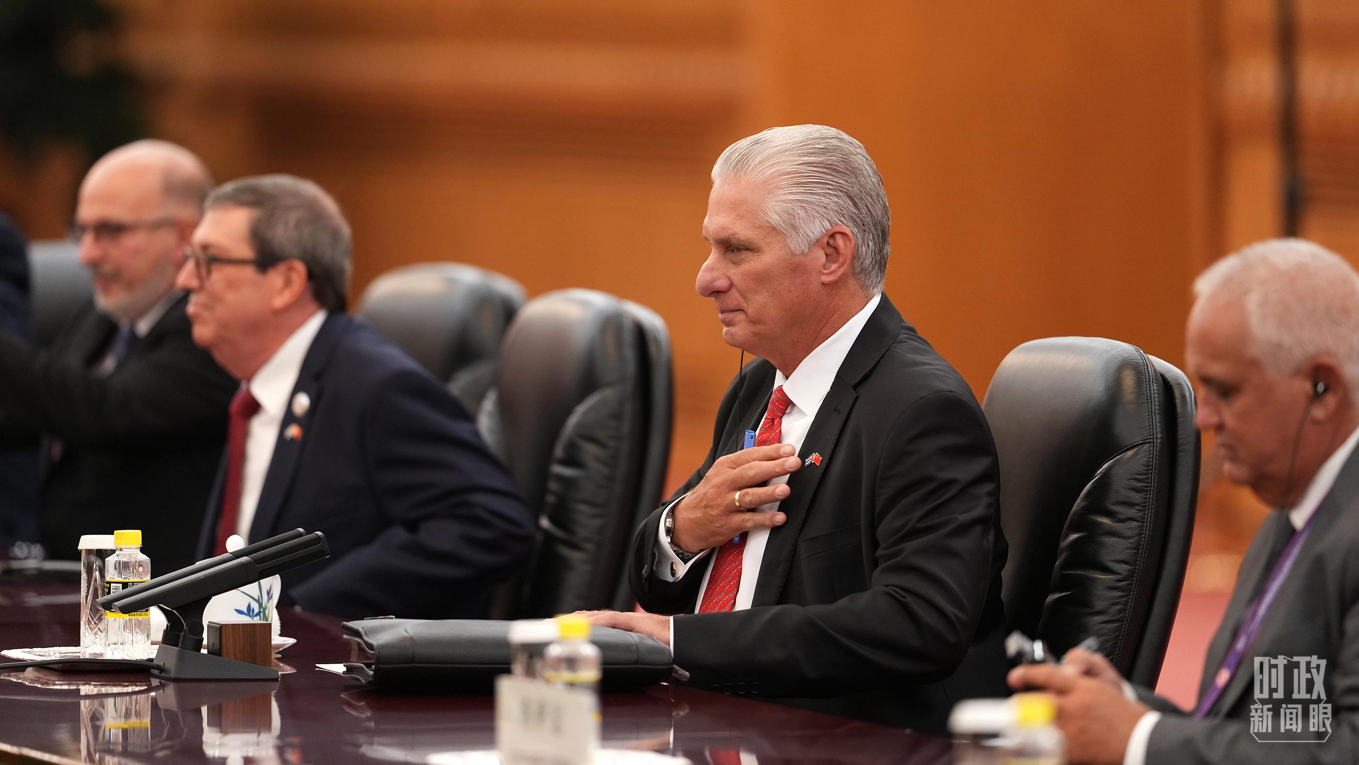△古巴共產黨中央委員會第一書記、古巴國家主席迪亞斯-卡內爾在會見中。(總臺記者李晉拍攝)