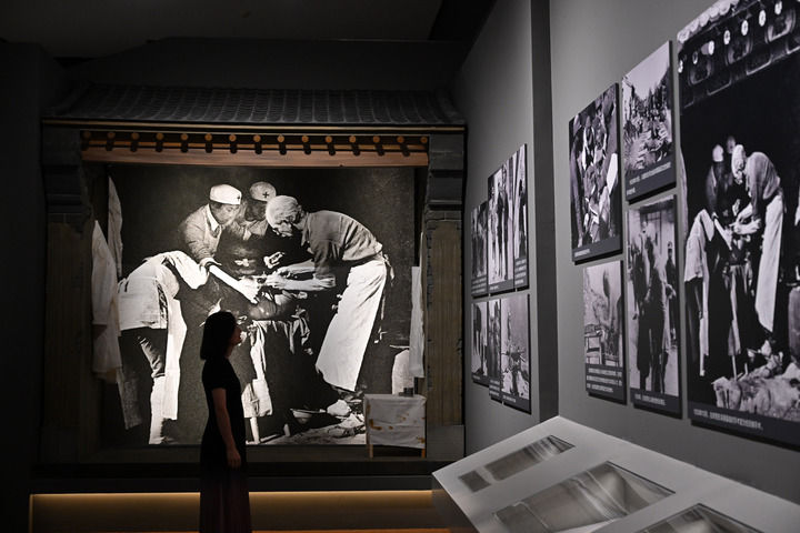 2025年9月7日,在中國(guó)國(guó)家博物館,一名媒體人員觀看白求恩的照片。新華社記者 金良快 攝