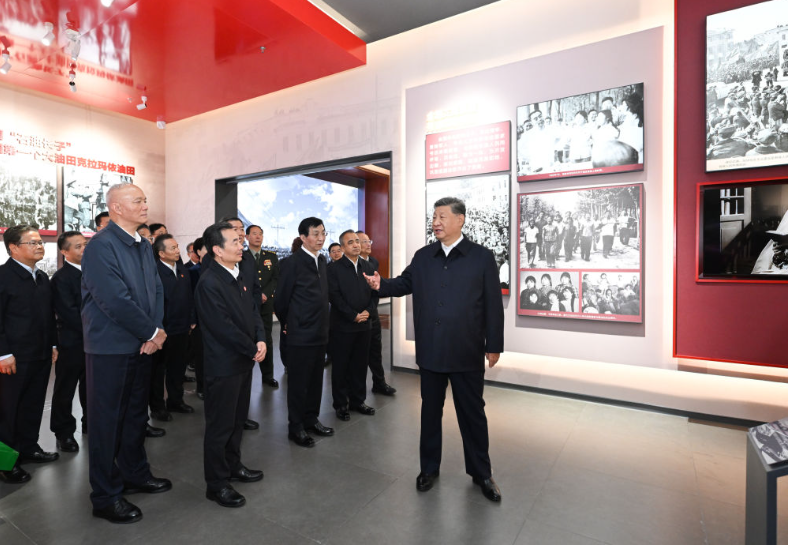 24日上午,習(xí)近平總書記來到烏魯木齊文化中心展覽館,參觀新疆維吾爾自治區(qū)成立70周年主題成就展。自治區(qū)成立時(shí)的歷史視頻,十月拖拉機(jī)廠生產(chǎn)的第一批拖拉機(jī),打贏脫貧攻堅(jiān)戰(zhàn)的新舊對(duì)比照片……總書記認(rèn)真聽取講解,不時(shí)駐足察看。