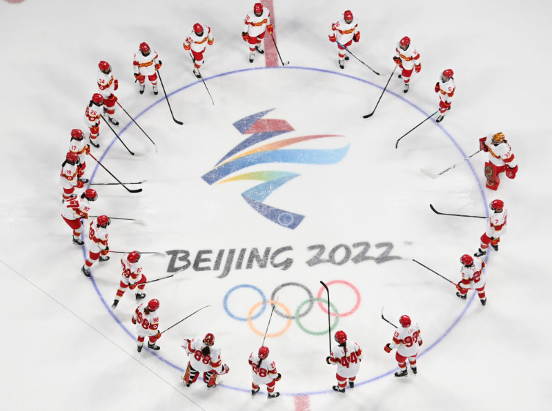 △北京2022年冬奧會(huì)是迄今女性參賽比例最高、參與項(xiàng)目最多的一屆冬奧會(huì)。圖為中國(guó)國(guó)家女子冰球隊(duì)在賽場(chǎng)。