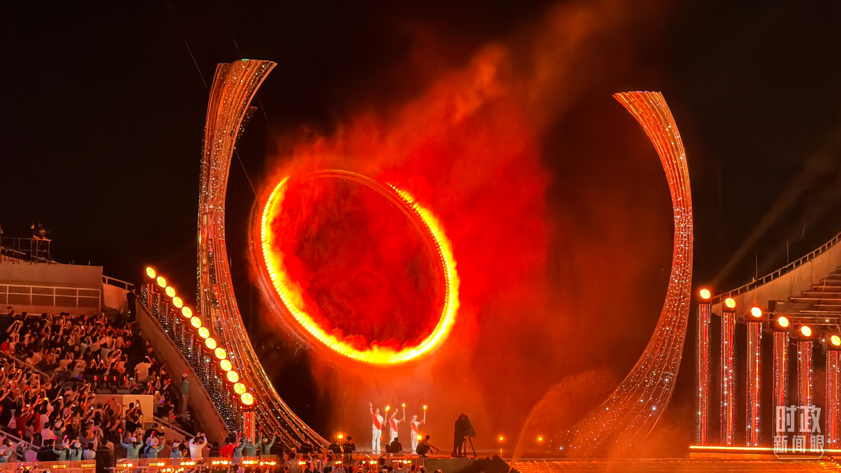 △第十五屆全運(yùn)會(huì)主火炬點(diǎn)燃環(huán)節(jié)。(總臺(tái)央視記者范一鳴、蔣碩拍攝)