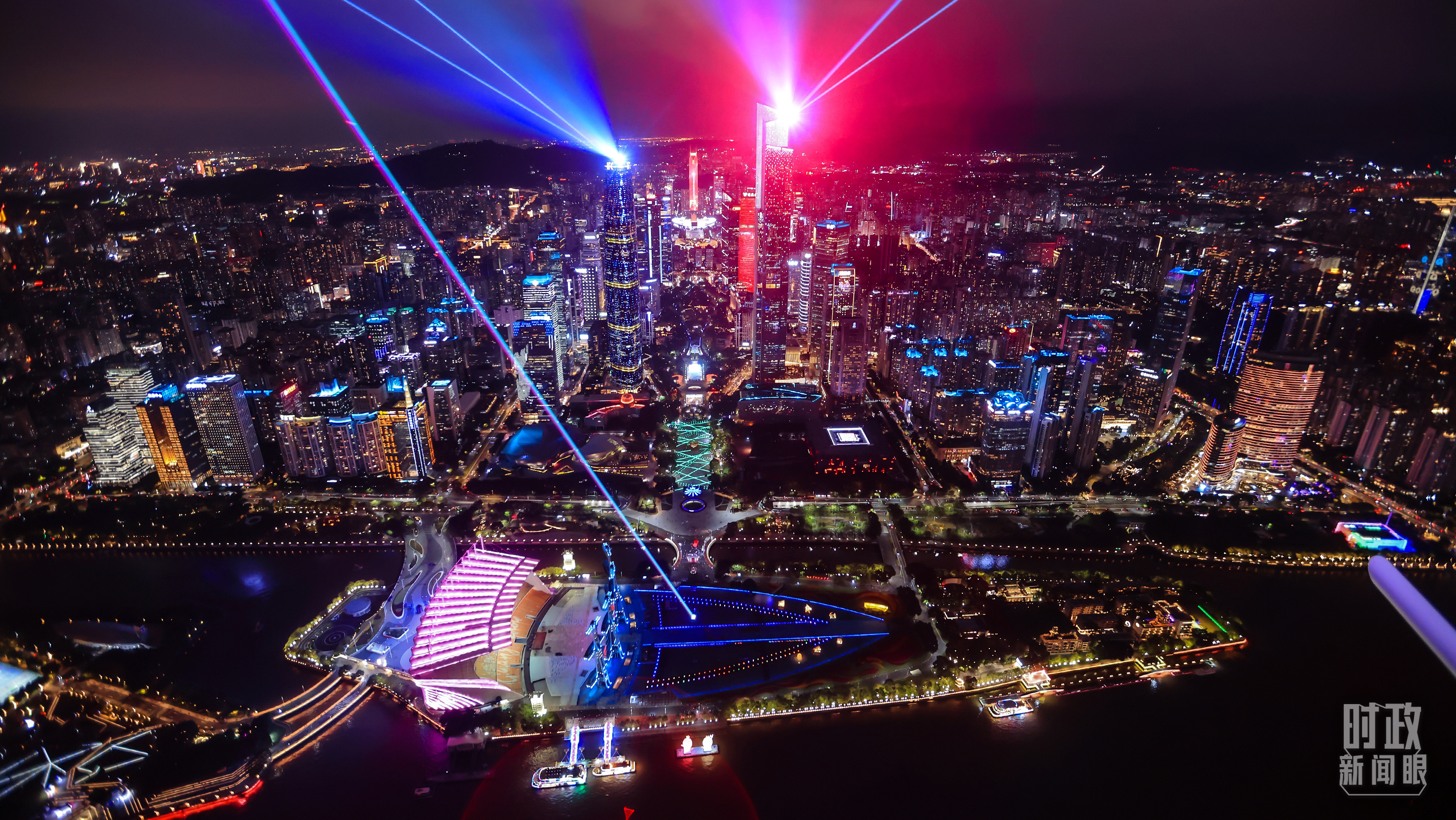 開(kāi)幕式巧妙融入香港維多利亞港、澳門(mén)大三巴、廣州塔等城市地標(biāo)元素,實(shí)現(xiàn)粵港澳三地同步升國(guó)旗儀式。
