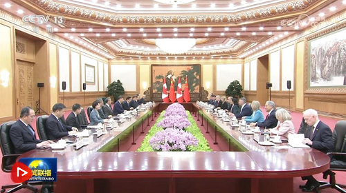 1月16日上午,國家主席習(xí)近平在北京人民大會堂會見來華進行正式訪問的加拿大總理卡尼。