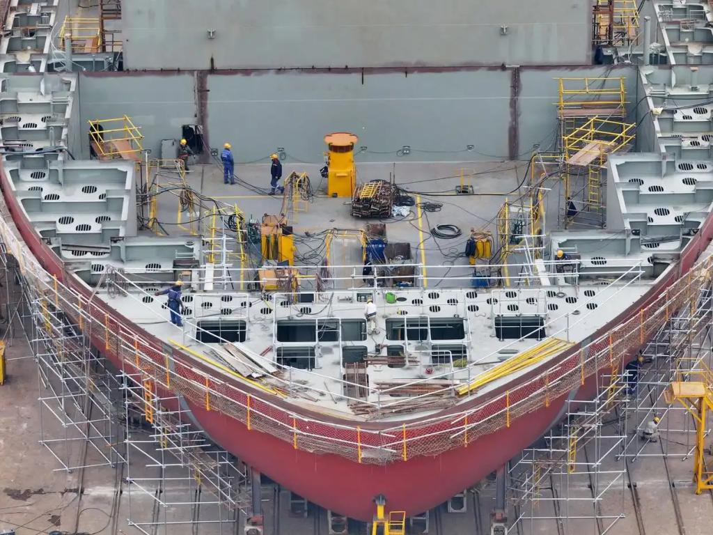 △2026年1月4日,在江蘇南京一船廠內(nèi),工人們抓緊完成船舶制造訂單。