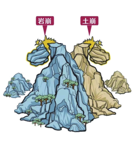 2.遭遇高速滑坡時(shí),如滑坡呈整體滑動(dòng)時(shí),迅速抱住身邊的樹(shù)木等固體物體,也可以躲避在結(jié)實(shí)的障礙物下。不能將避災(zāi)場(chǎng)地選擇在滑坡的上坡或下坡。