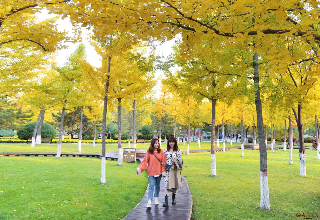深秋時(shí)節(jié),忻州城區(qū)隨處可見(jiàn)花成帶、綠成片、樹(shù)成景的優(yōu)美風(fēng)景線。近年來(lái),我市不斷推進(jìn)城市綠化,提升綠化檔次,極大改善了人居環(huán)境。圖為游客徜徉在人民公園銀杏林內(nèi)。 (張存良 攝)