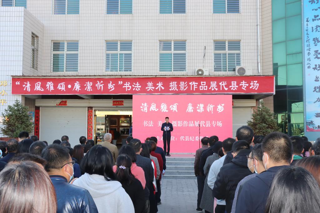 本次“清風(fēng)雅頌·廉潔忻州”書法美術(shù)攝影作品展,在代縣專場展出為期三天,入展作品共260幅,其中包括忻州市部分國家級名家特邀作品47幅,省內(nèi)外助展作品23幅,我縣作品15幅。展出作品分為攝影圖片、書法藝術(shù)、繪畫和剪紙四個(gè)部分,作品主題鮮明,風(fēng)格多樣,作者以書畫為載體,深入挖掘書畫藝術(shù)的廉潔內(nèi)涵,以畫承廉、畫賦廉意,結(jié)合傳統(tǒng)文化和現(xiàn)代手法,把理想信念、從政道德等反腐倡廉教育內(nèi)容,形象、生動(dòng)、直觀地傳遞給廣大黨員干部群眾,使大家在欣賞中得到啟示,在愉悅中受到教育,讓代縣全體黨員干部在潛移默化中受到廉潔教育影響,同時(shí)營造“以廉為榮、全民崇廉”的黨風(fēng)廉政建設(shè)新格局。