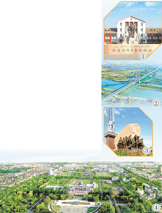 石河子市被譽(yù)為“共和國軍墾第一城”。第一代老軍墾陸振歐回憶當(dāng)時(shí)的情景,仍記憶猶新:“那時(shí)只有車馬店、賣馕的幾戶人家,除了北面蘆葦?shù)?,到處是荒灘戈壁?!钡谝淮鴪F(tuán)人喝鹽堿水、睡“地窩子”,人拉肩扛、挖渠引水、改造葦湖、開墾荒地,在荒無人煙的大漠之邊打造了一座現(xiàn)代化新城。如今,石河子市碧水繞城、綠意盎然、鳥語花香,綠蔭掩映座座現(xiàn)代化廠房。石河子崛起為新疆重要工業(yè)基地,享有“戈壁明珠”的美名?!笆幼訌囊粡埌准埰鸺遥l(fā)展到現(xiàn)在,靠的就是兵團(tuán)人艱苦奮斗、開拓創(chuàng)新的精神?!标懻駳W感慨地說。