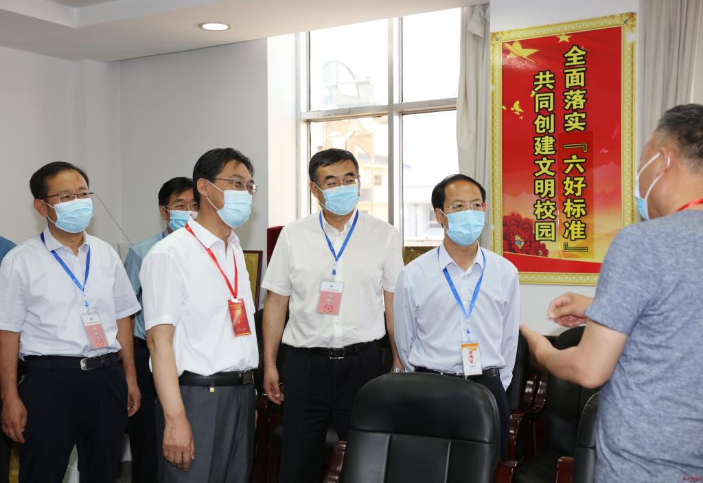 在忻州市高考指揮中心,李青山一行通過視頻指揮調(diào)度平臺實時察看各縣(市、區(qū))各考點考場試卷啟封、分發(fā)、開考情況,察看各考點周邊環(huán)境秩序,到保密室視頻察看各地試卷安全保密措施。隨后深入忻州十中和十一中考點,仔細(xì)察看考生進(jìn)入考點時的測溫通道和安檢通道,實地走訪醫(yī)務(wù)室、考務(wù)室、保密室,通過視頻監(jiān)控察看各考場情況。李青山指出,高考是實現(xiàn)教育公平、社會公平的重要制度,承載著為國選人育人的重大使命。各級各相關(guān)部門要充分認(rèn)識做好疫情常態(tài)化防控形勢下高考工作的特殊性、重要性、復(fù)雜性,周密部署,扎實抓好高考期間各項工作,全力保障高考順利進(jìn)行。要按照職責(zé)分工和任務(wù)安排,抓好試題保密、考場引導(dǎo)、考風(fēng)考紀(jì)等關(guān)鍵環(huán)節(jié),切實把高考工作組織好、落實好,要加強(qiáng)考點周圍環(huán)境整治等高考各項服務(wù)保障,為考生營造安靜、有序、寬松的考試環(huán)境。各相關(guān)部門要按照高考有關(guān)規(guī)定,密切配合、通力合作,確保各項工作做到細(xì)而又細(xì)、實而又實,把高考服務(wù)工作做得更細(xì)更扎實,為廣大考生穩(wěn)定發(fā)揮提供良好考試環(huán)境。