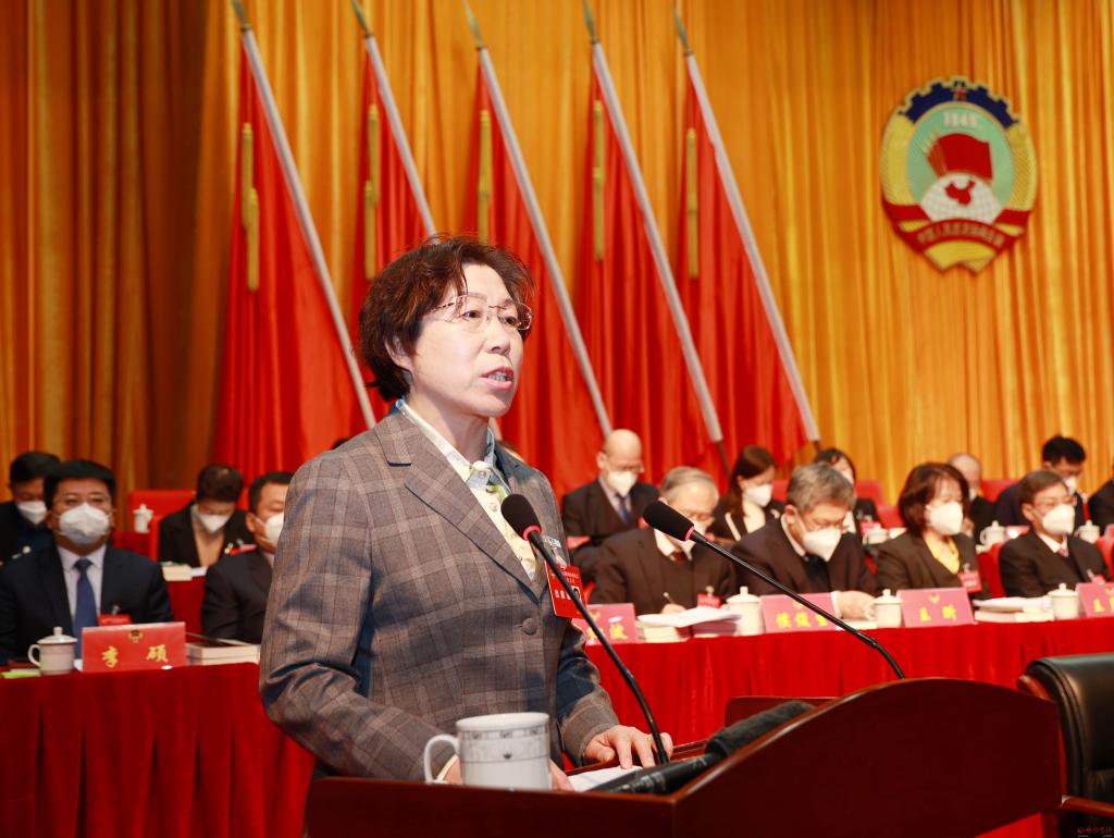 王海英向大會作提案工作情況報(bào)告。張存良 攝